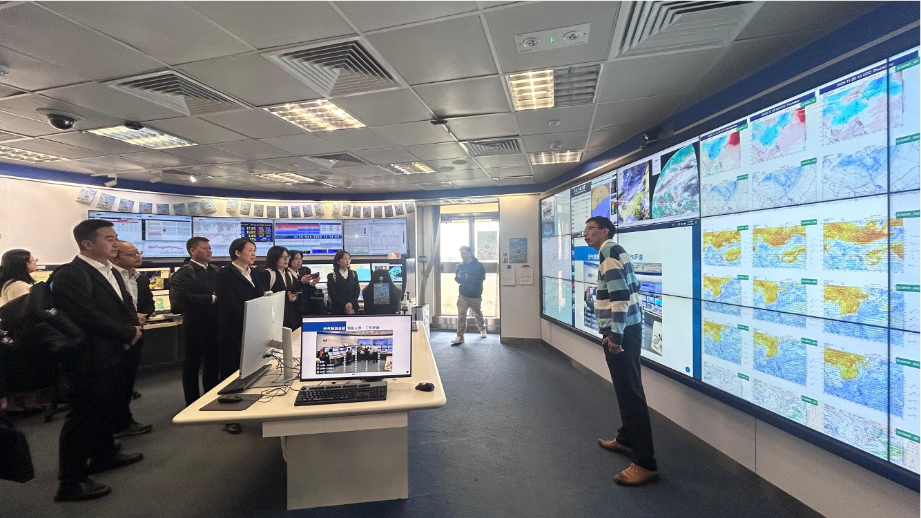 其中,香港天文台特別安排了一場內容豐富的交流學習活動,專家團隊走進氣象中心、歷史室與氣象儀器館,探秘被譽為天氣預報「最強大腦」的氣象運算體系,直觀感受先進氣象科技在災害預警中的應用;由莫偉健高級科學主任介紹香港天文台臨近預報系統的技術原理與運行機制,使專家團隊更加清晰理解香港在極端天氣應對方面的實時監測與快速響應能力。